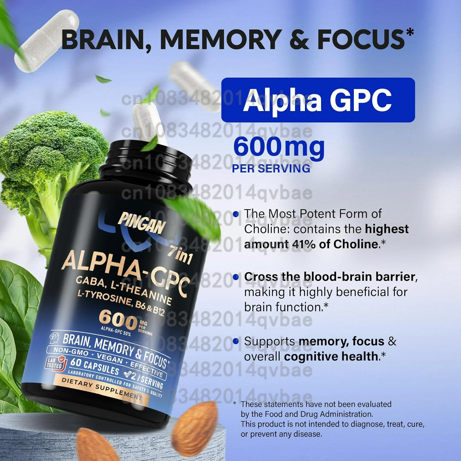 Exact match with emphasis on Alpha GPC and choline for brain health and memory.