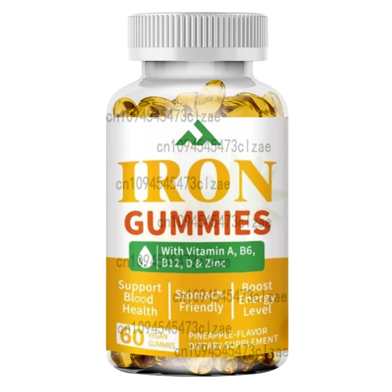Iron Gummies - Vegetarian Iron Supplements Containing Vitamin B12 C、 Zinc, Folate Sugar Free, Pineapple Flavor, 60 Capsules