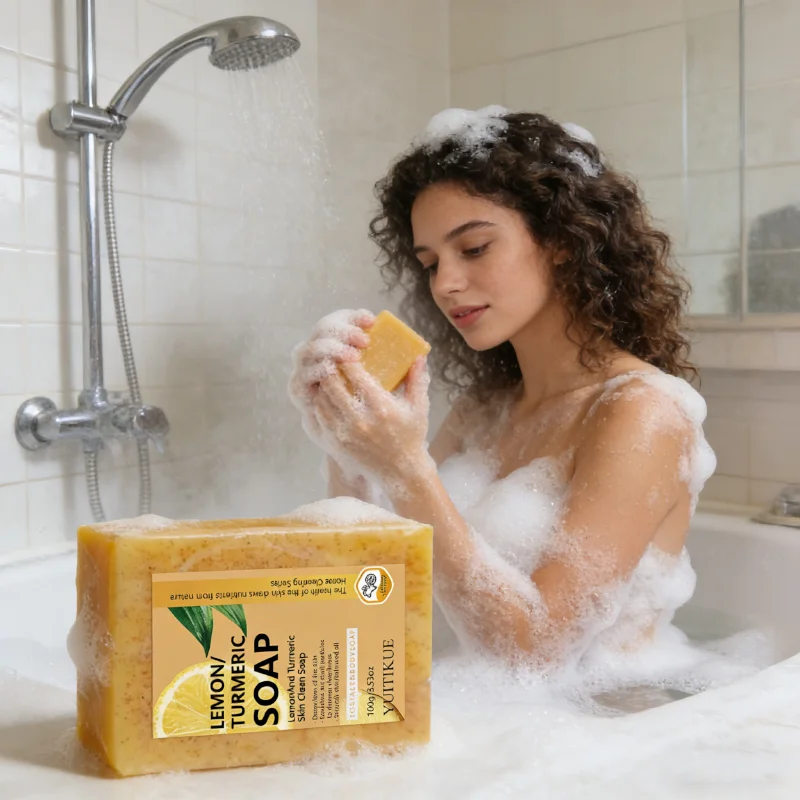 A turmeric and lemon soap for exfoliation and skin radiance, relevant for topical turmeric applications.
