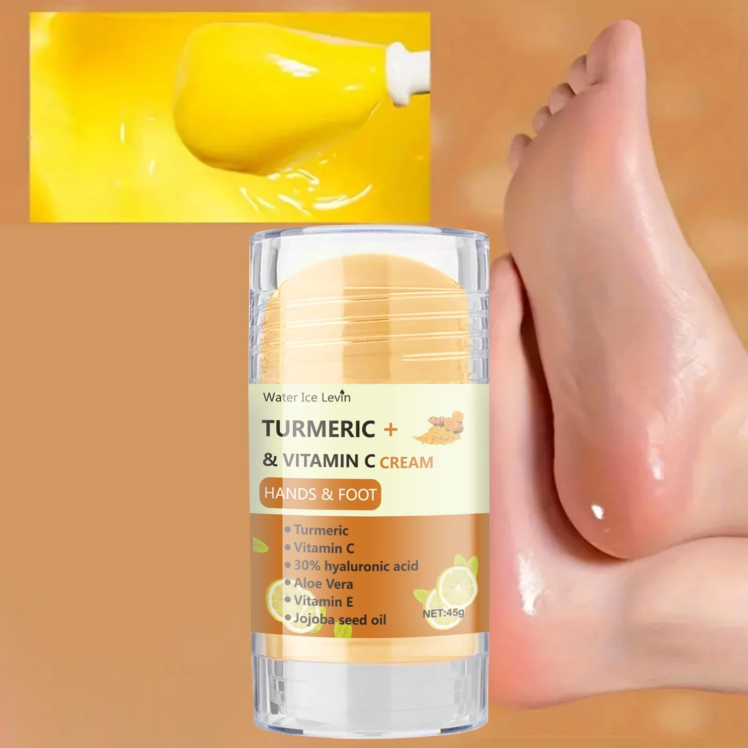 Turmeric & Vitamin C Hand and Foot Cream with 30% Hyaluronic Acid Moisturizing Nourishing Cream for Dry Skin 45g