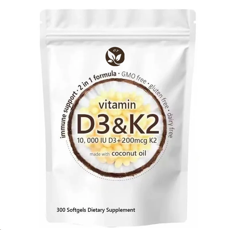 Vitamin D3 K2 Virgin Coconut Oil 300 Capsules 2-in-1 Vitamin D And K Support Calcium Absorption In