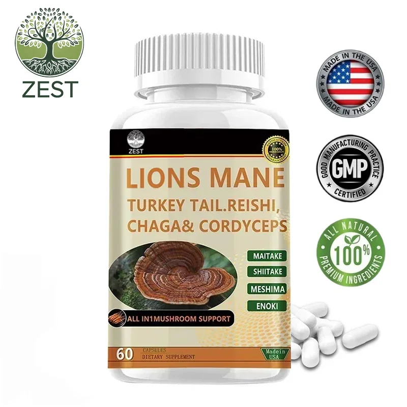 Contains Reishi as part of a mushroom capsule blend, relevant to reishi mushroom supplements.