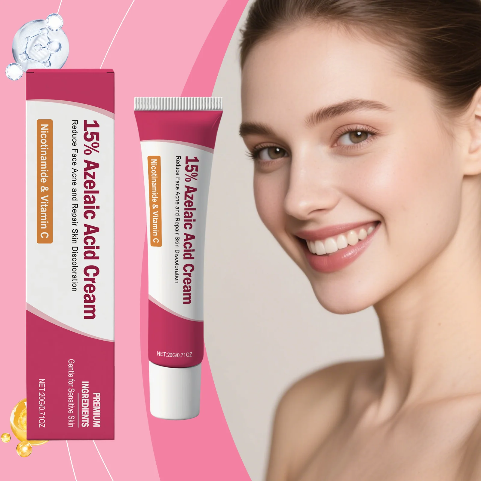15% Azelaic Acid Cream Acne Treatment Pore Remover Sensitive Skin Barrier Repair Nicotinamide Vitamin C Blackhead Remover Cream