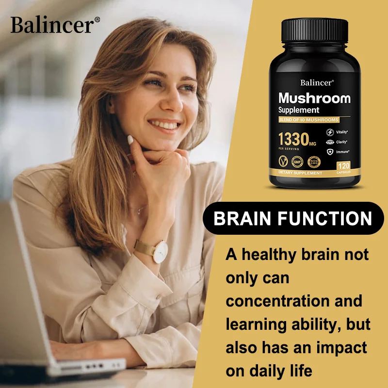 Original Mushroom Complex Capsules with Lions Mane Chaga Cognitive Brain Function Stress Relieves Beauty Health Diet Supplement