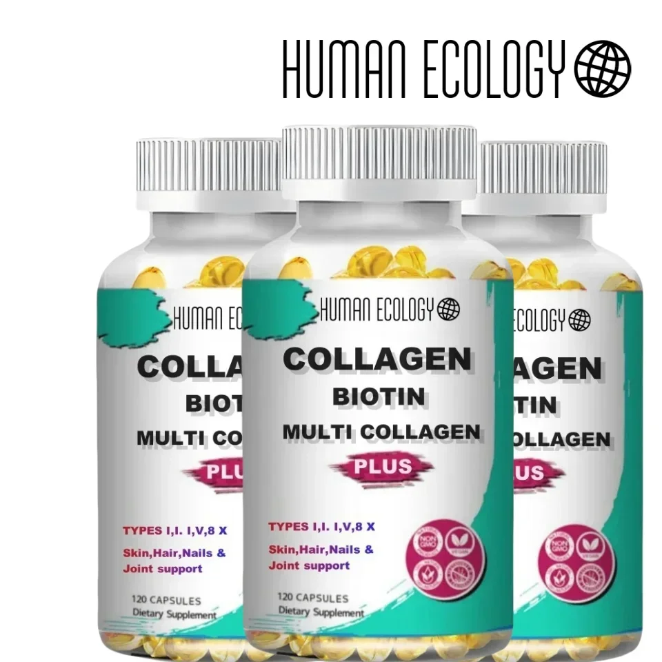 This product specifically mentions multiple types of collagen for skin, joints, hair, and nails, directly matching the user's query about collagen.