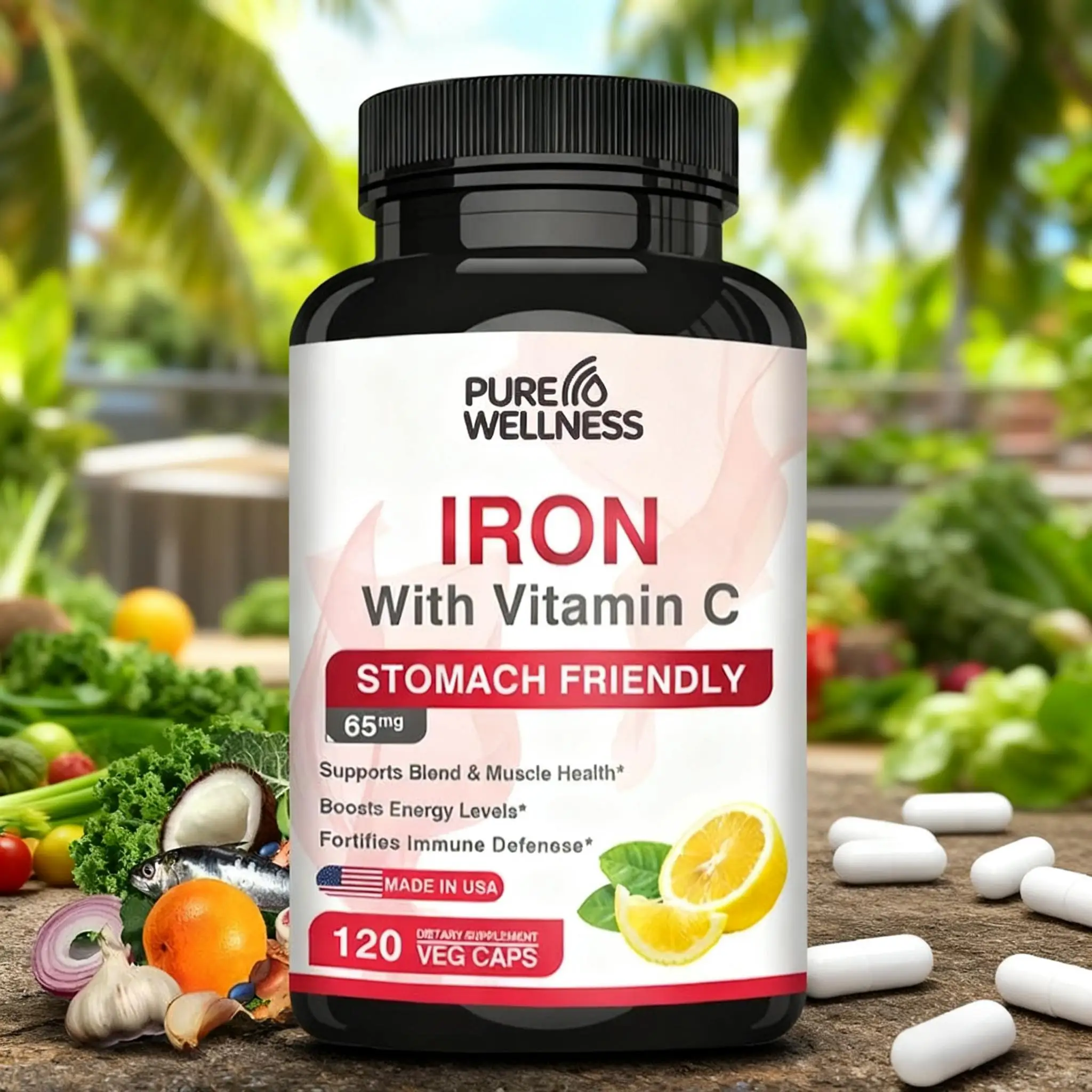 Features iron and vitamin C supplements aimed at boosting energy and immune function.