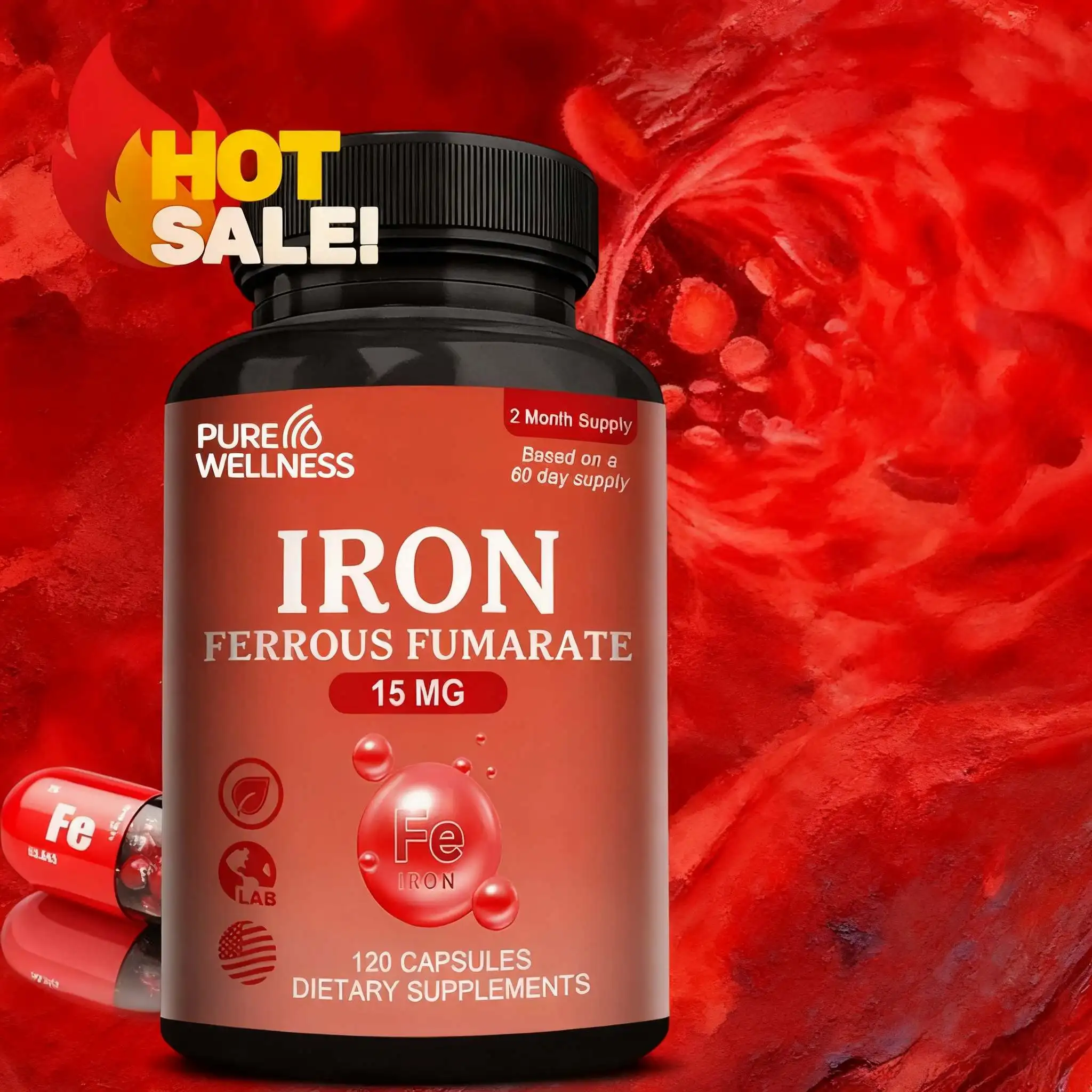 Iron hematopoietic supplement aimed at blood health and immunity, relevant for iron deficiency.