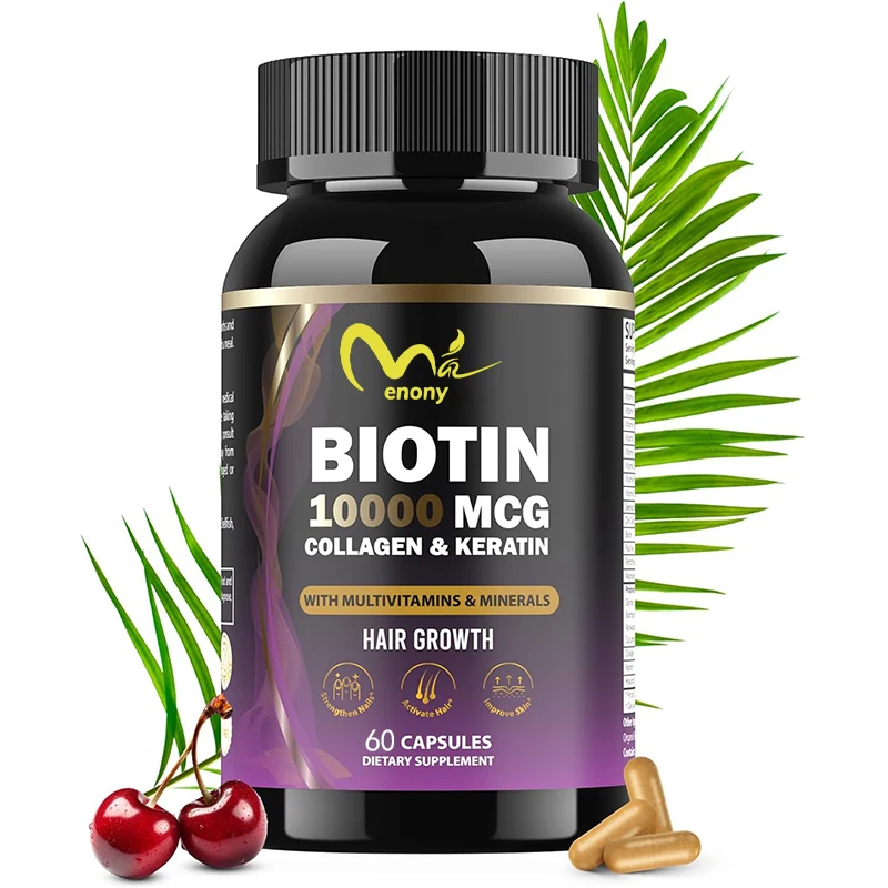 Biotin 10000MCG supports collagen and keratin, containing a variety of vitamins and minerals -60 capsules