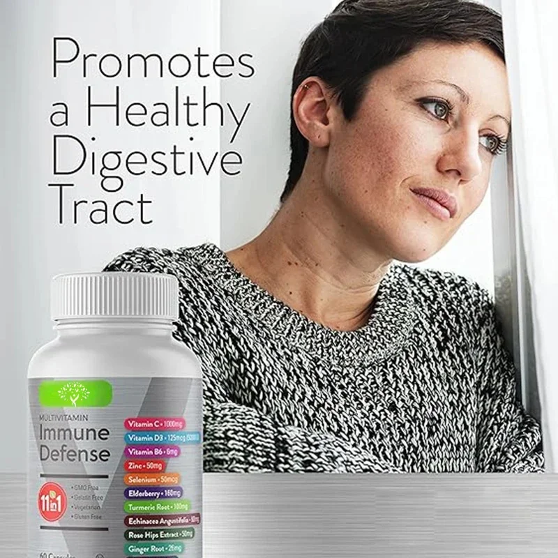 Vitamin C, D3, B6, Zinc, Elderberry, Echinacea, Turmeric, Rosehip, Ginger-11 In 1 Complex Vitamin Immune Defense Supplement