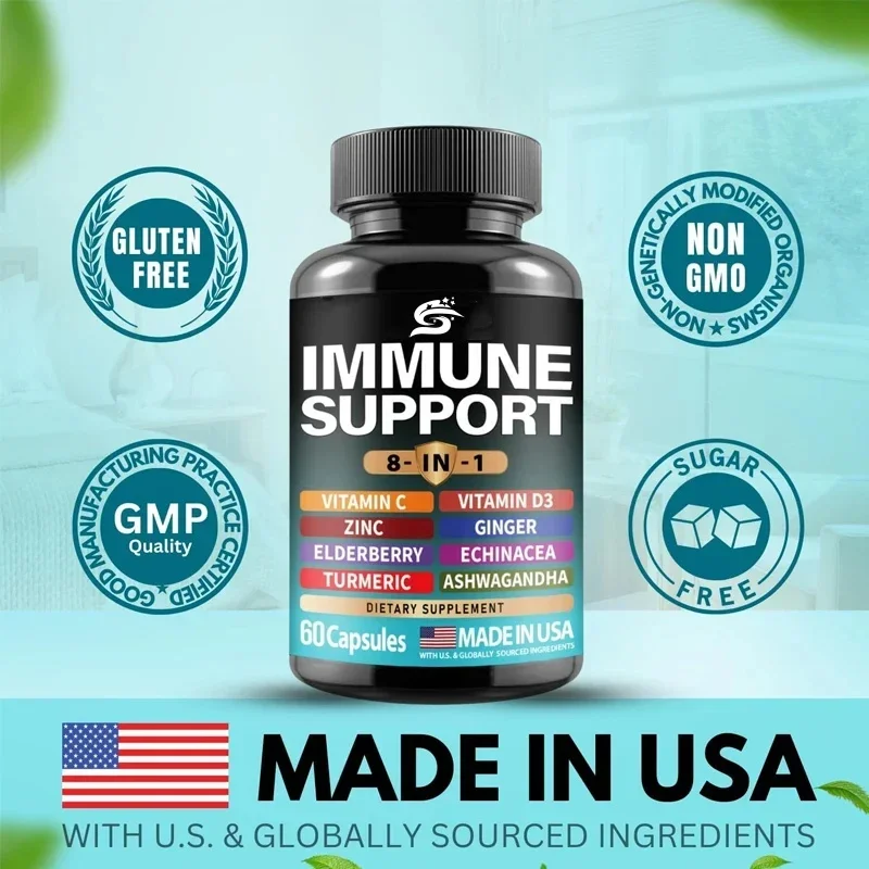 Containing Echinacea, Vitamin C And Zinc, Vitamin D, Turmeric, Curcumin And Ginger, B6, Elderberry-8-in-1 Immune Supplement